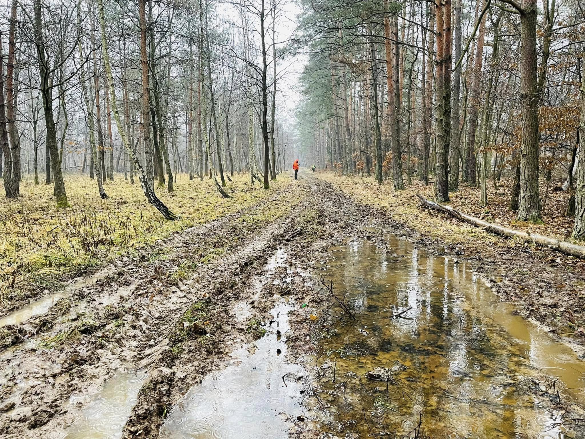 Az időjárás előzetesen sok jót nem ígért és nem is hazudott. A gyülekezőkor már lassúdad, pityergő eső hullt, ami hol így, hol erősebben egész estig megmaradt. Ehhez pedig mindössze néhány fokos hideg idő társult, ami együtt már nagyon kellemetlen tud lenni. A vadásztársaság két hosszú hajtást tervezett, négy megállóval és átcsoportosulással. A terep végig viszonylag sík volt, de a víz sok bosszúságot okozott. Egy óra múlva már mindenki el volt ázva, a bokrokról is a nedvesség minden repedésbe utat talált és a hajtás nagy része cuppogó sárban, néhol pedig bokáig (másutt térdig) érő vizes, zsombékos talajon zajlott döntően erdei fenyős, fiatalos és bokros területen.