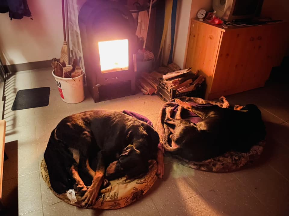 Kimerült kopók pihennek a kályha mellett (Fotó: Bödők Gergely)