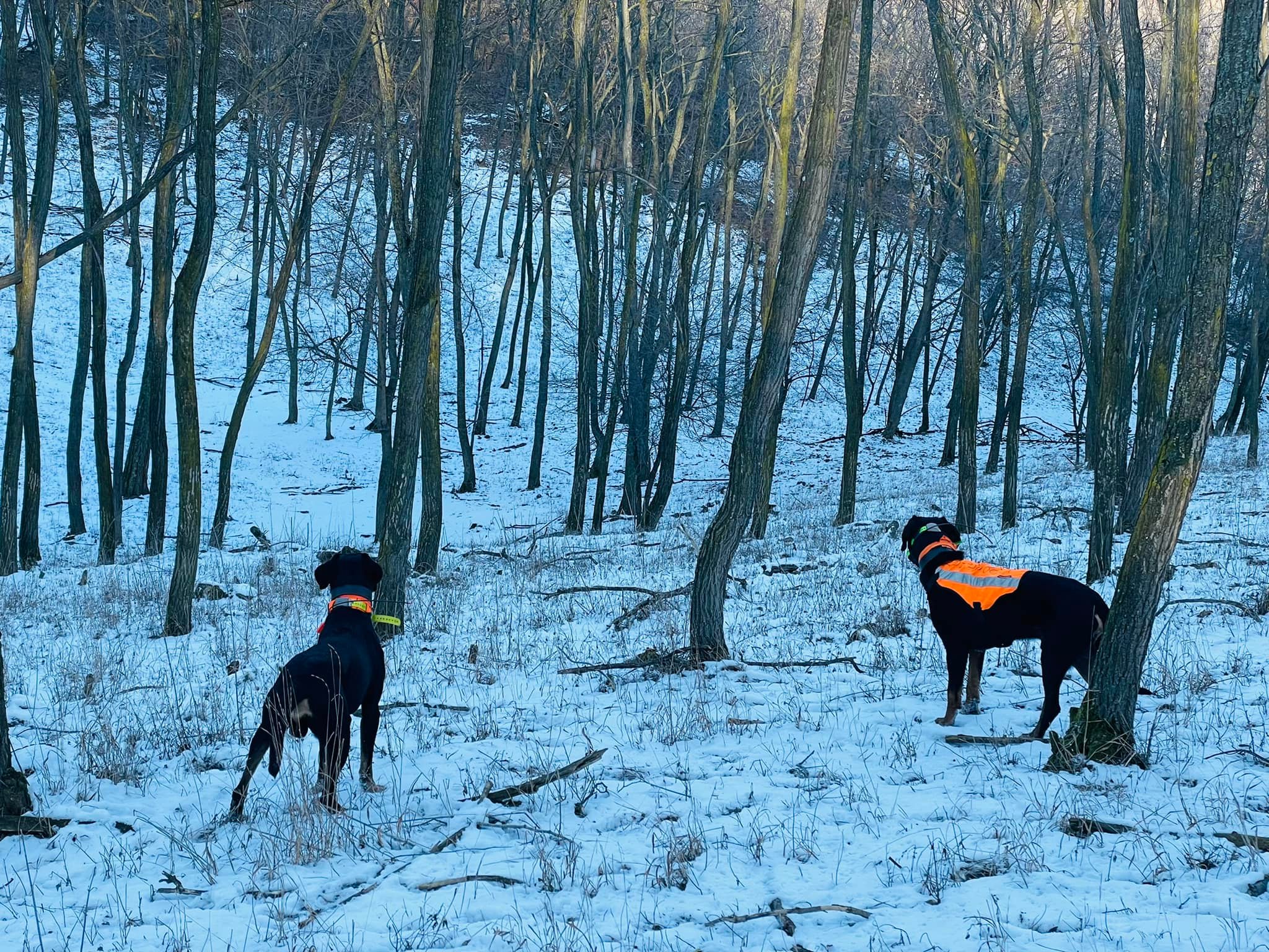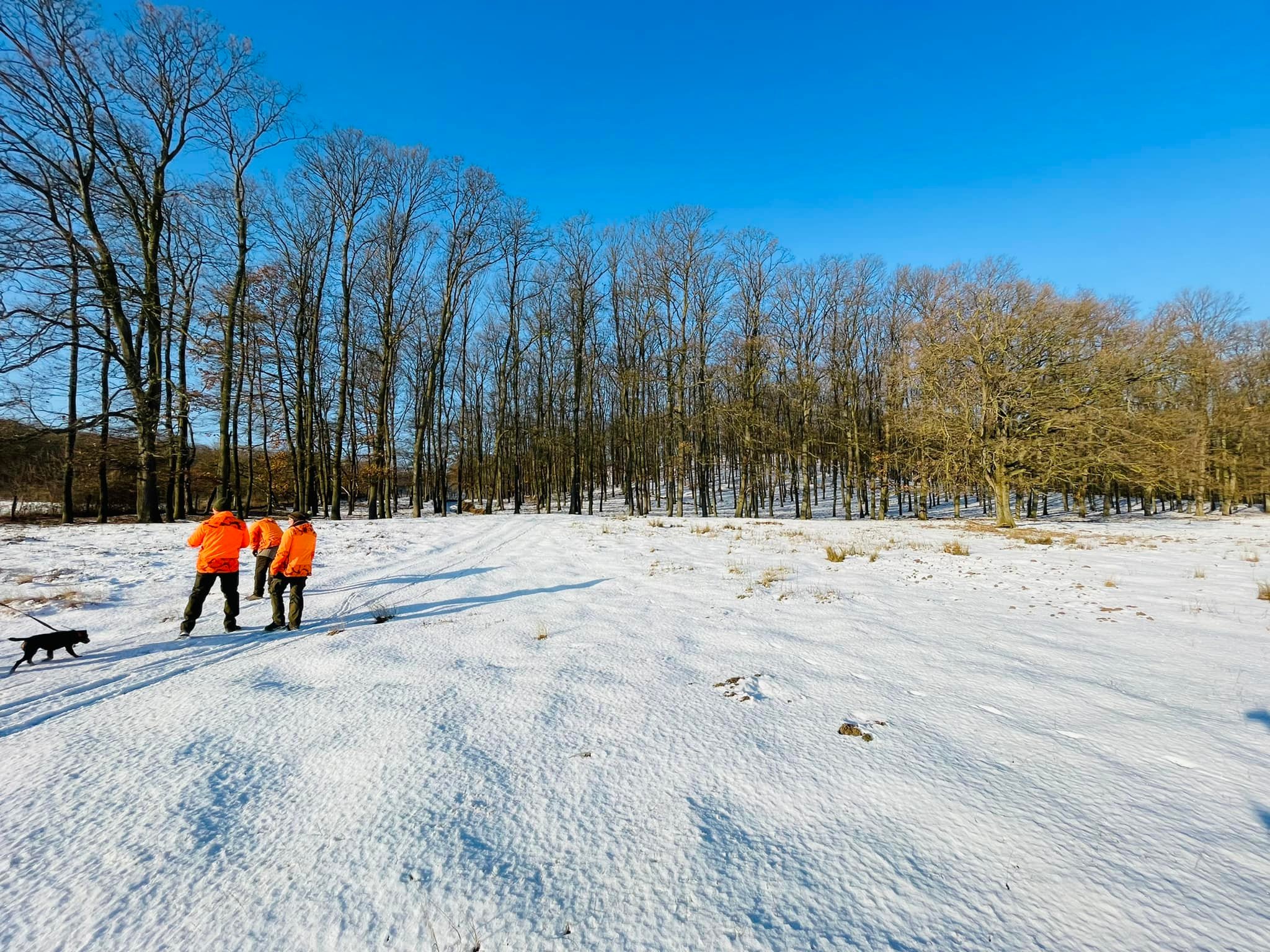 Erre a napra három hajtást szerveztek, két rövidebbet délelőttre, egy hosszabbat délutánra. A kora reggeli hajtás -13 fokban indult, délre a hőmérséklet -3 fokra emelkedett, a nap sugarainak köszönhetően ugyanakkor a hőérzet ennél kellemesebb volt. Az első hajtás nádasos részen zajlott, a második viszont már egy rövid zárt kerti rész kivételével a Tamási környékére jellemző erdővidéken – a nap nagy részén körülbelül 5 cm-es hóban. A leghosszabb, harmadik hajtás során a tolnai dombság minden szépségét láthattuk, miközben a kutyák hosszan előttünk az egyik dombról a másikra hajtották a vadakat. Igazi kopónak való vidék volt – talán az eddigi legszebb, ahol eddig hajtottunk.