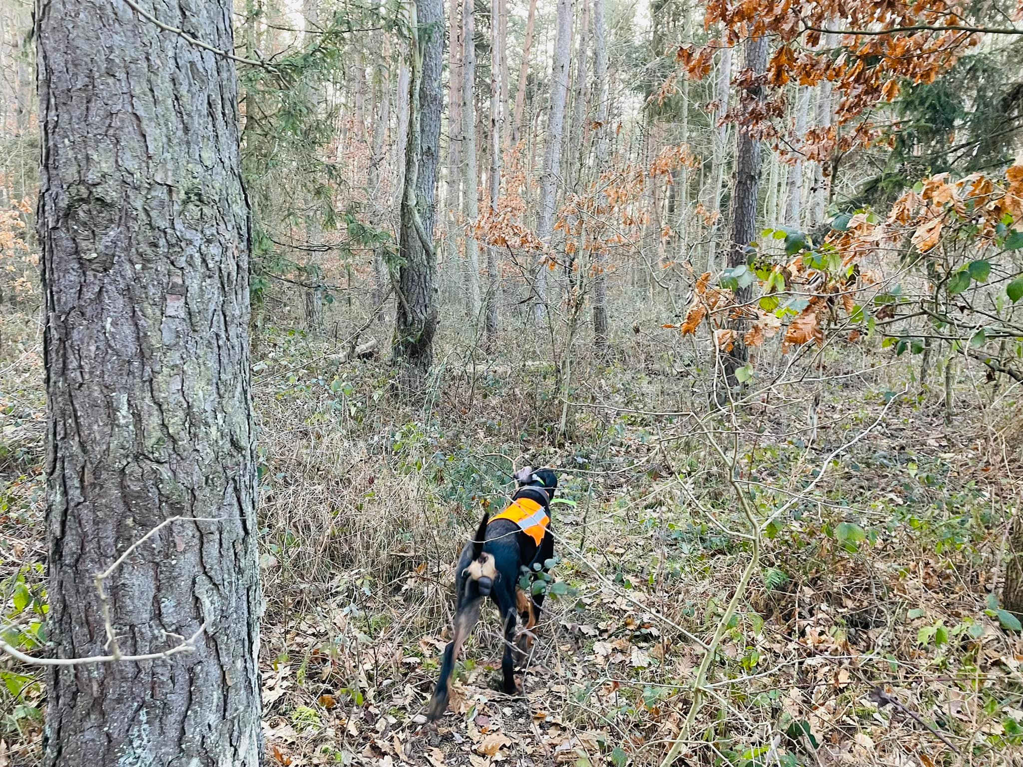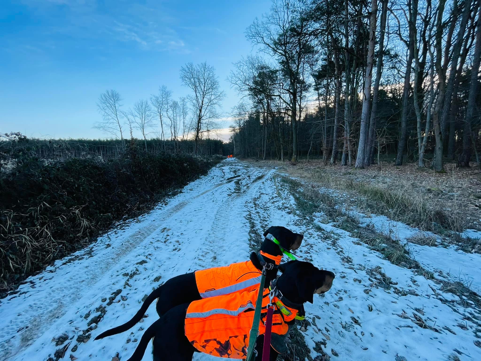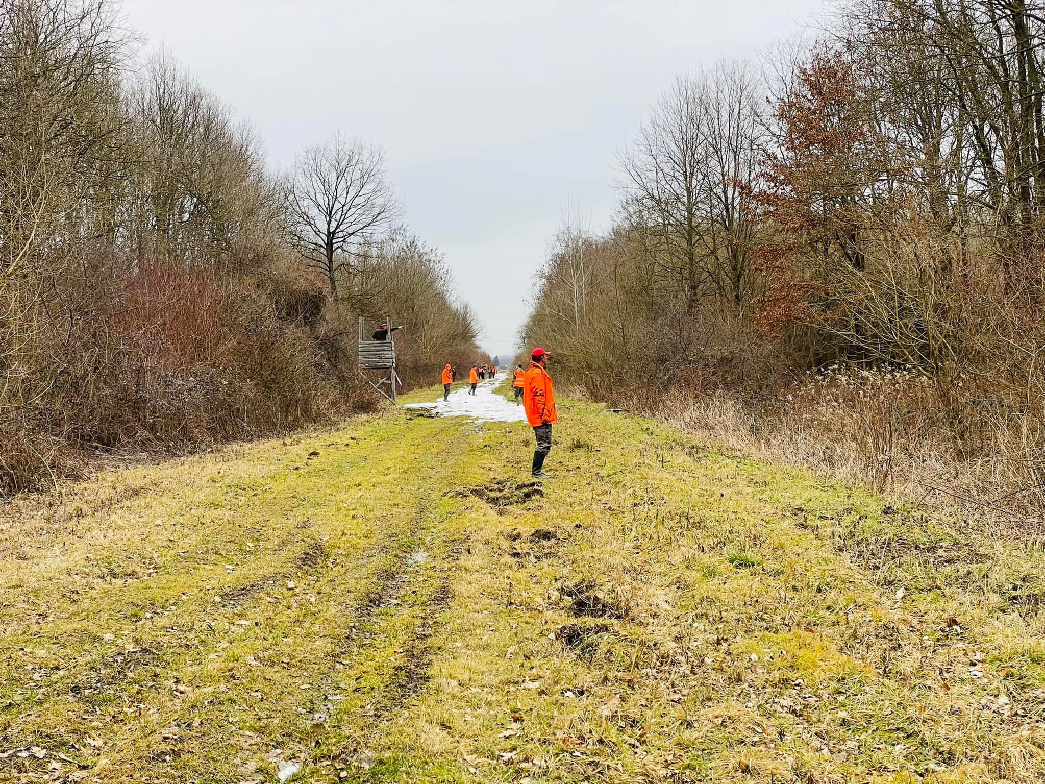 A napra három hajtást szerveztek. A -2 fokban indult első hajtás viszonylag könnyen járható, „klasszikus” őrségi erdőben zajlott le, a második a január elején már egyszer megismert Rába menti területen. A hajtó szemszögből hosszabbra tervezett második hajtást követően mintegy fél órát gyalogoltunk a kopókért, akik másfél kilométerre elmentek egy kitörő vaddal (a szomszédban két helyen is ugyanezen a napon terelővadászat zajlott). A második hajtást követően a vadásztársaság székhelyén mi, hajtók is isteni vaddisznópecsenyét kaptunk ebédre. (😃) A harmadik hajtás volt a leghosszabb (ami egy rövid szakasz kivételével szintén jól járható erdőségben zajlott le), azért is, mert kontrahajtást is terveztek a végére.
