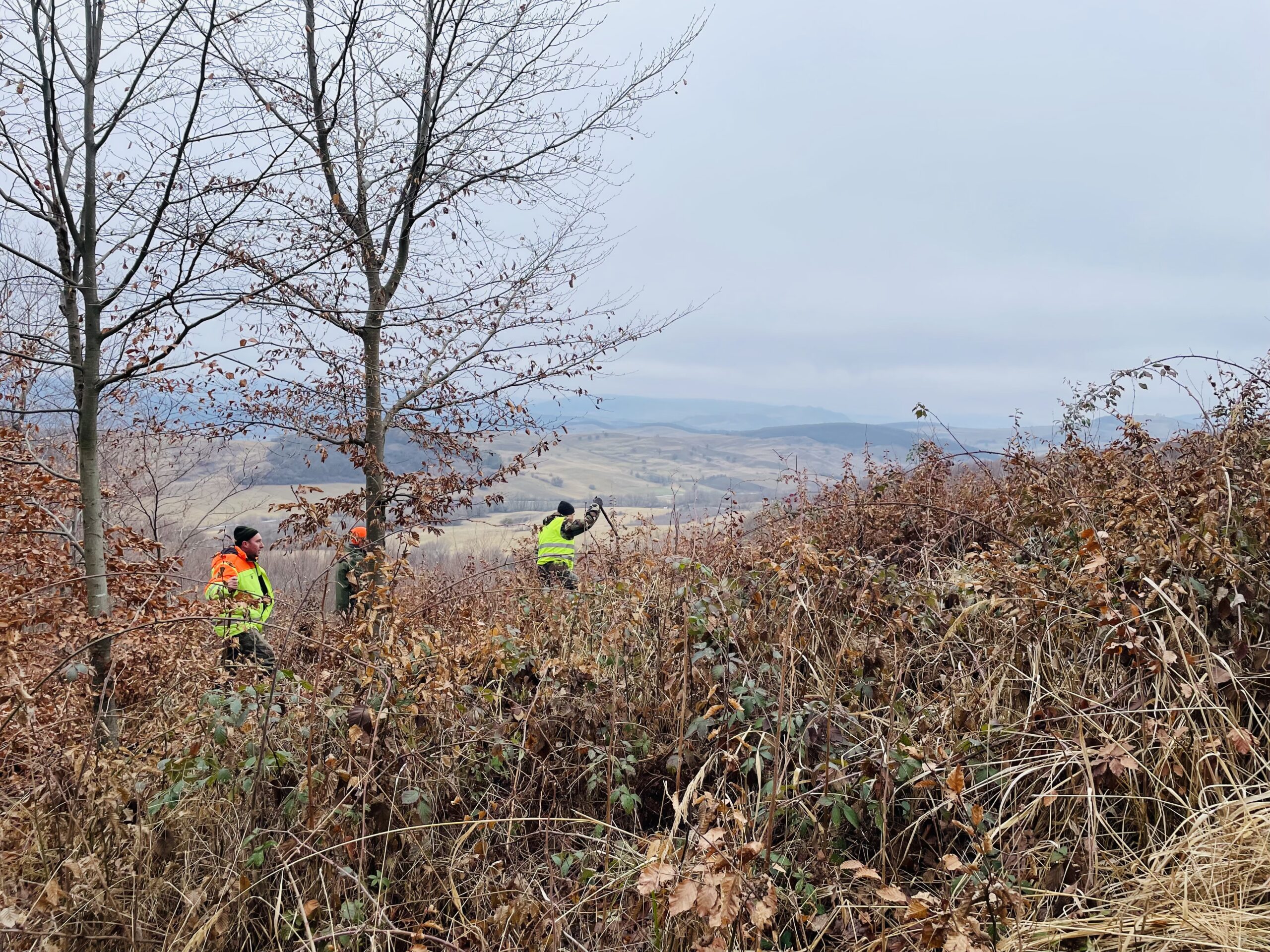 Ahol az erdő ritkulni kezd, hirtelen elénk tárul az egész völgy. Mintha a természet készakarva most húzná fel a függönyt: a távolban fenyvesek sávjai futnak végig keresztbe, a dombokon kisebb nagyobb foltokban bokrok tűnnek elő, a fiatal erdőszegély és vágásterület pedig mindenütt kellemetlen, sűrű kökényessel és szedressel van borítva, ahol talán csak a vadak tudják, hol kezdődik és hol ér véget az emberi rend. A hajtósor hamar elnyúlik, kevés a hajtó, nagy a terület. Aki nem barátja a magányos rengetegnek, könnyen elveszve érezheti magát. A szétszakadt sort csak a távolból hallatszó kiáltások tartják össze. Aztán szűkül a rengeteg, a szélekről mindegyre csatlakoznak a mezőt is megjárt hajtók és az első hajtás lassan véget ér. Nem láttunk medvét és farkast sem, csak egy öreg koronás bika ügetett át előttünk méltósággal az árnyak közt. A lesállásoknál néhány róka esett, egyik az „árokban” próbált kiszökni, de a puska megelőzte. A kopóink közül kettő már visszajött, de Zete messzebb elmaradt. Ismerjük: vadászlázban nem ismeri a fáradtságot. Végül egy negyedóra távollét után a tülök hangjára feltűnik – lihegve, sárosan és csapzottan.
