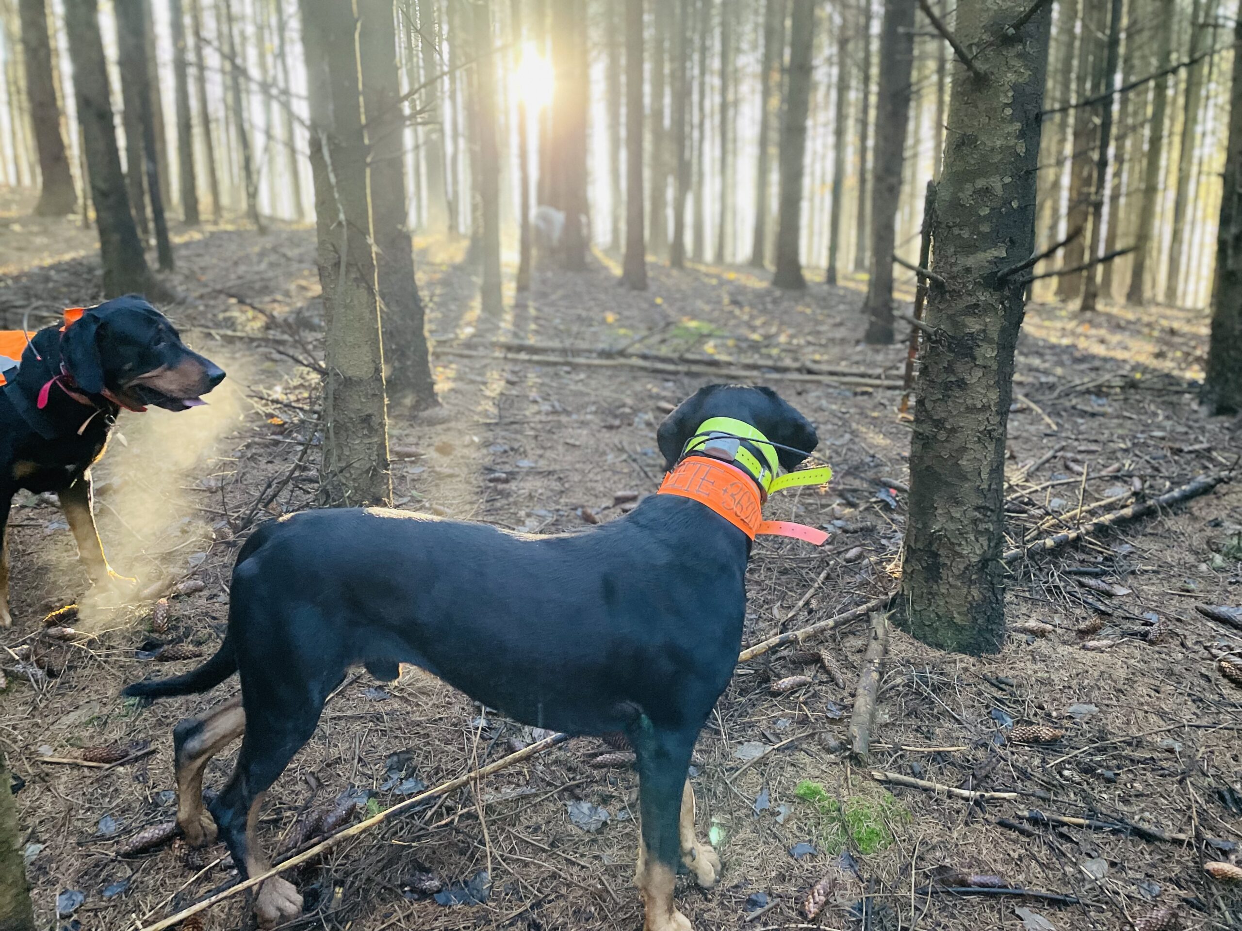 Ebéd után újra nekivágunk. Gyalogszerrel tartunk a második szakasz indulóhelye felé. Hosszan megyünk előbb egy kanyargós, hézagos aszfalton, majd váltunk át durva földútra, végül bevágunk jobbra a kopár mező felé. Közben kulacsok és történetek cserélnek gazdát, mesélik, pár hete itt akkora medvével találkoztak, hogy a „levegő is megállt körülötte”. Nagy szerencse, hogy a mackó is meglepődött és egy bokorral odébb már csak a nyoma maradt. Ábránfalva fölött járunk, a mezőn kisebb cserjés, itt-ott szántás is, amott egy kanyargó patak nyoma, de lent a mederben csak az aszályról árulkodó pocsolyák. Az „Indu-u-ul!” kiáltás után újra nekilódulunk: bokros, tüskés sávokon át, domboldalra kapaszkodva, fák alatt átbújva, ha kell kidőlt törzsekre támaszkodva. Az út emelkedik, és mi vele együtt – mélyen be a fenyvesbe. Az időnek és a viharoknak magukat megadó kidőlt fák szinte fogják a kezünket, úgy vezetnek. A vadászat legszebb szakaszán járunk. Az erdőn mindinkább úrrá lesz a félhomály, a fák közt borostyáncsíkokban átütő napsugarak különös hangulatot varázsolnak körénk, az egyre fáradtabb kopók pedig ködöt lehelnek a titkokkal és a fenyvesek fűszeres fagyanta illatával amúgy is bódítóan sűrű légbe. Sejtjük: az utolsó percek ezek. A fáradtság ünnepélyes áhítattá szelídül, minden mozdulat, minden hang az erdő örök ritmusába simul.