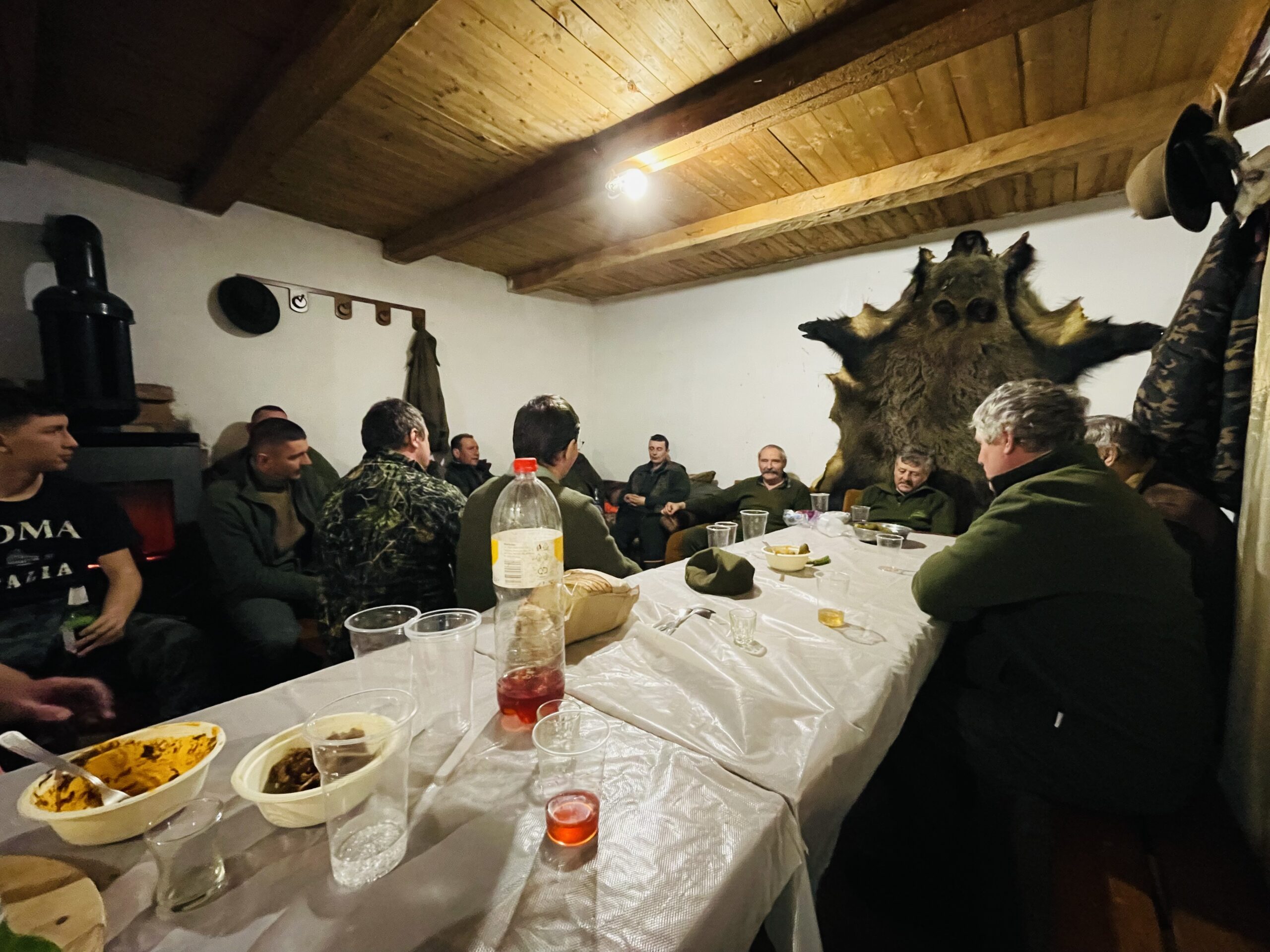 A vacsora alatt csendes mozgás veszi kezdetét a vadászházban, a társaság összeszokott mozdulatokkal rendezkedik be az este második felvonására. Tudjuk, mi jön: önfeledt adomázás és közös éneklés. Ez nem afféle hervatag férfikórus, hanem elementáris erejű dalárda, nóták és népdalok kavalkádja, biztos hanggal, erős szövegtudással, és ami talán a legfontosabb – őszintén. Itt minden dal mögött emlékek húzódnak, történetek, sorsok, évek. A hangulat gyorsan emelkedik, a kemence mellett már alig van hely, mi is keresünk magunknak egy sarkot – ki közelebb, ki távolabb. Nekünk külön eléneklik a Krasznahorka büszke várát – s közben átérezzük, hogy ez a folklór itt ma is élő, lélegző valóság.