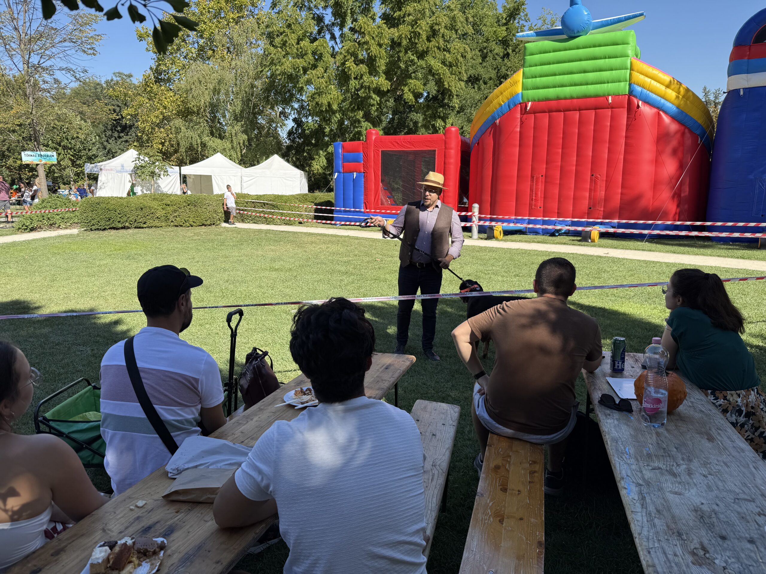 Szeptember 20., Rácalmás: Első alkalommal vettünk részt a Rácalmási Tökfesztiválon, ahol a szervezők gazdag programkínálattal készültek kicsiknek és nagyoknak. Az érdeklődők nagy része visszatérő vendégként érkezett, így igazi közösségi élményt teremtett a rendezvény. Előadásunkat egy hangulatos, füves zöld területen tarthattuk meg, ahol olyan vendég is akadt, aki kifejezetten miattunk látogatott el a fesztiválra. A családias légkörnek köszönhetően sok kérdésre volt idő, és a közönség szívesen fotózkodott velünk a végén. Köszönjük a meghívást Nyíri Andrea programszervezőnek!