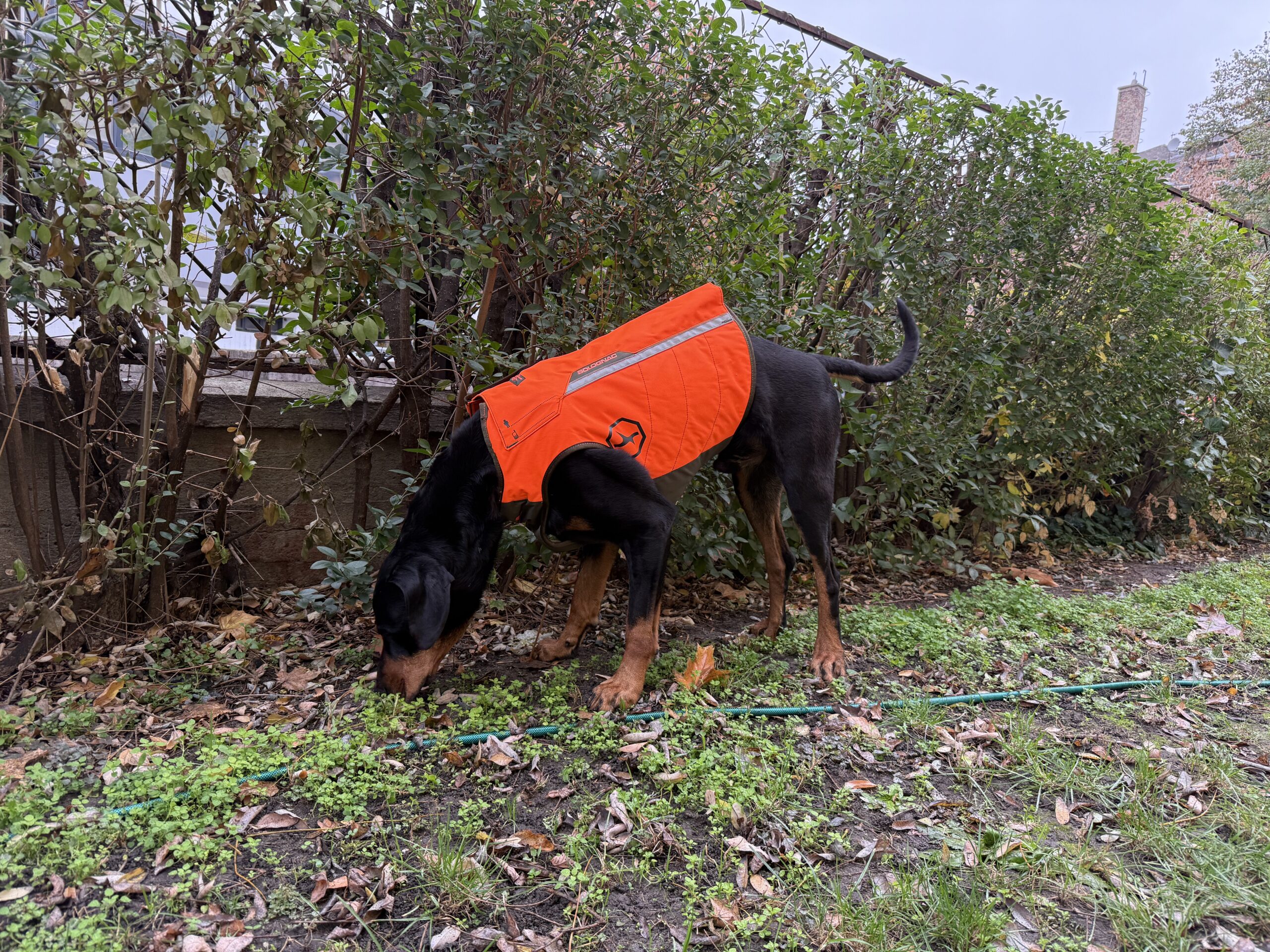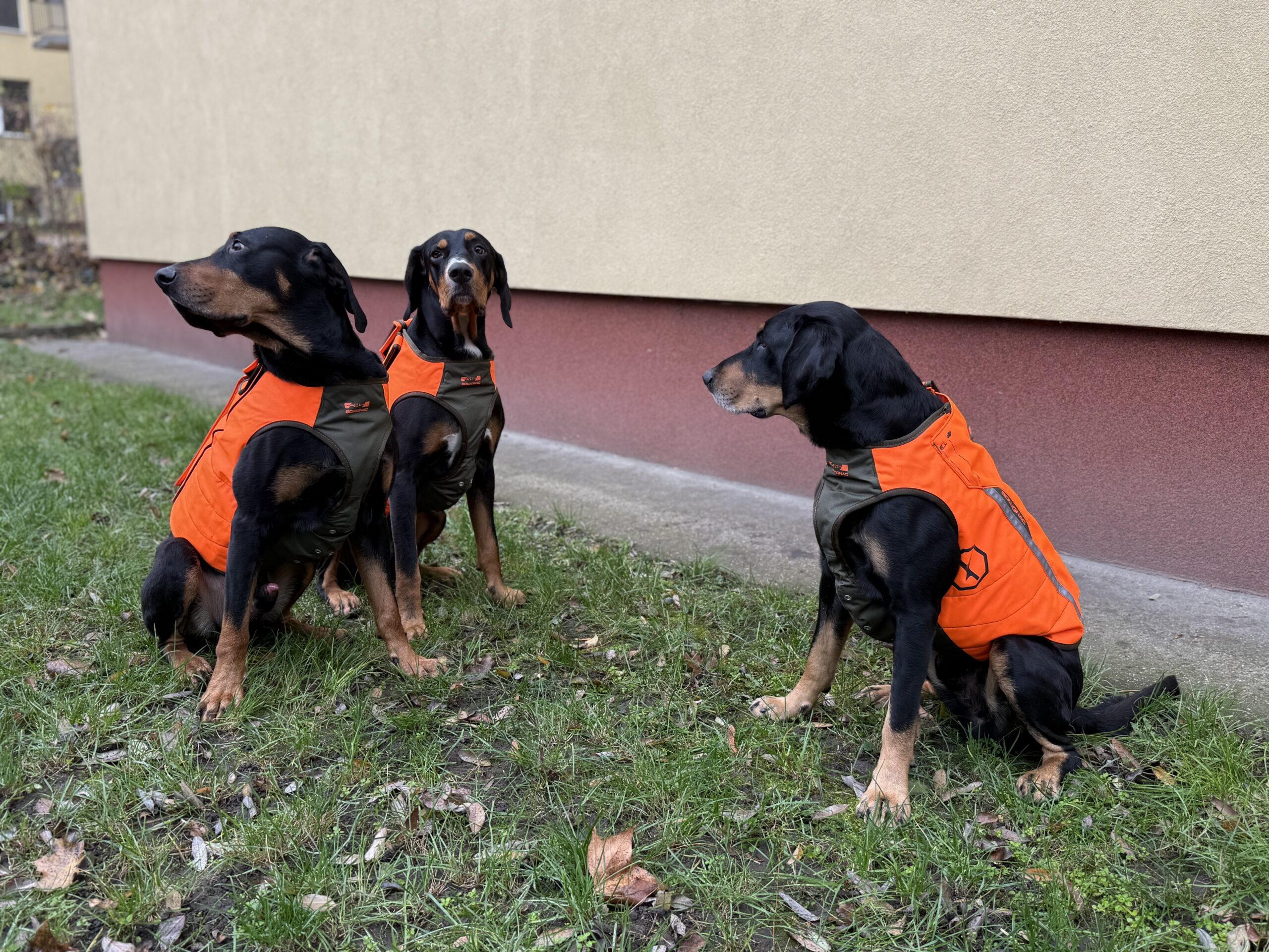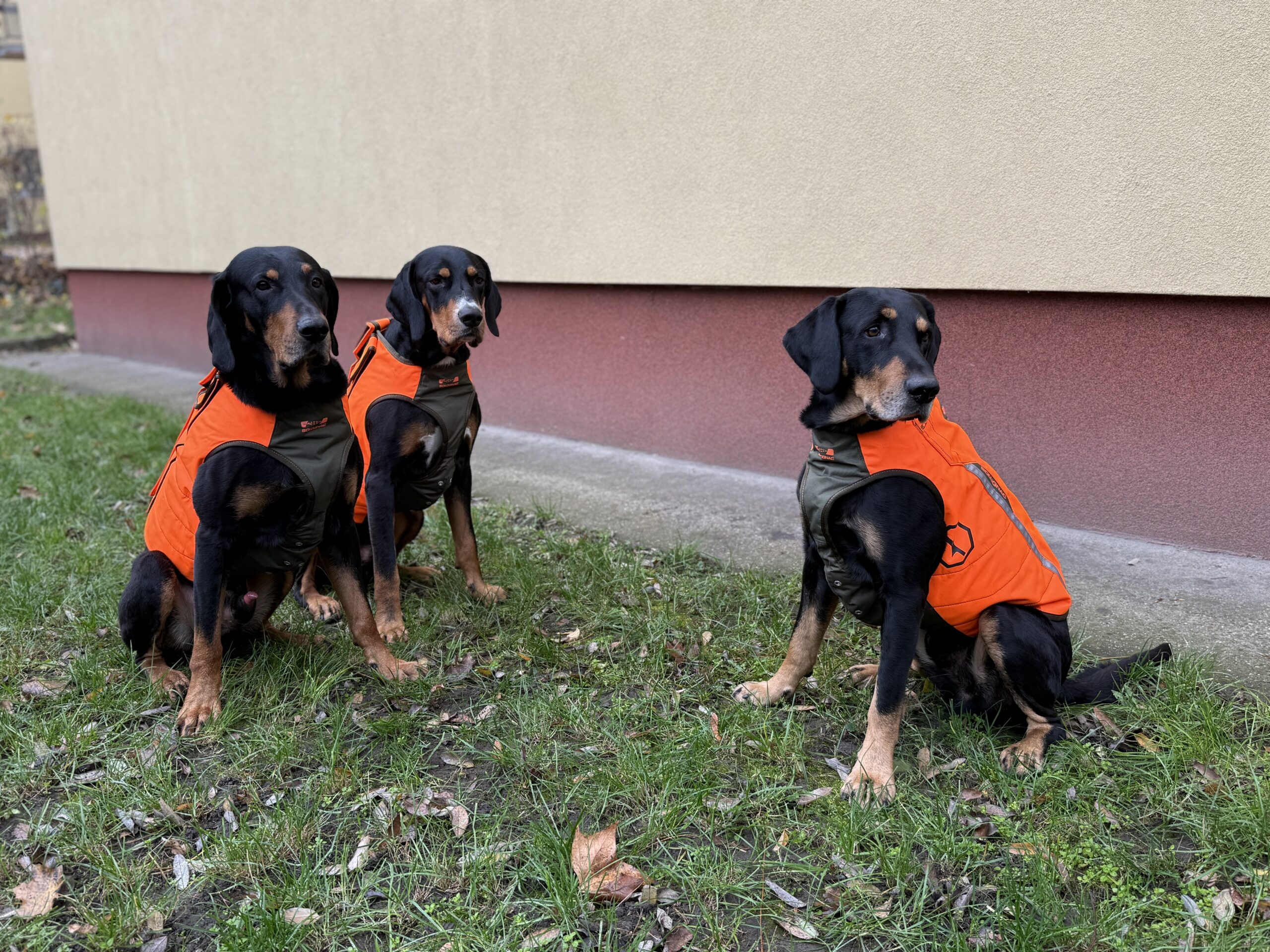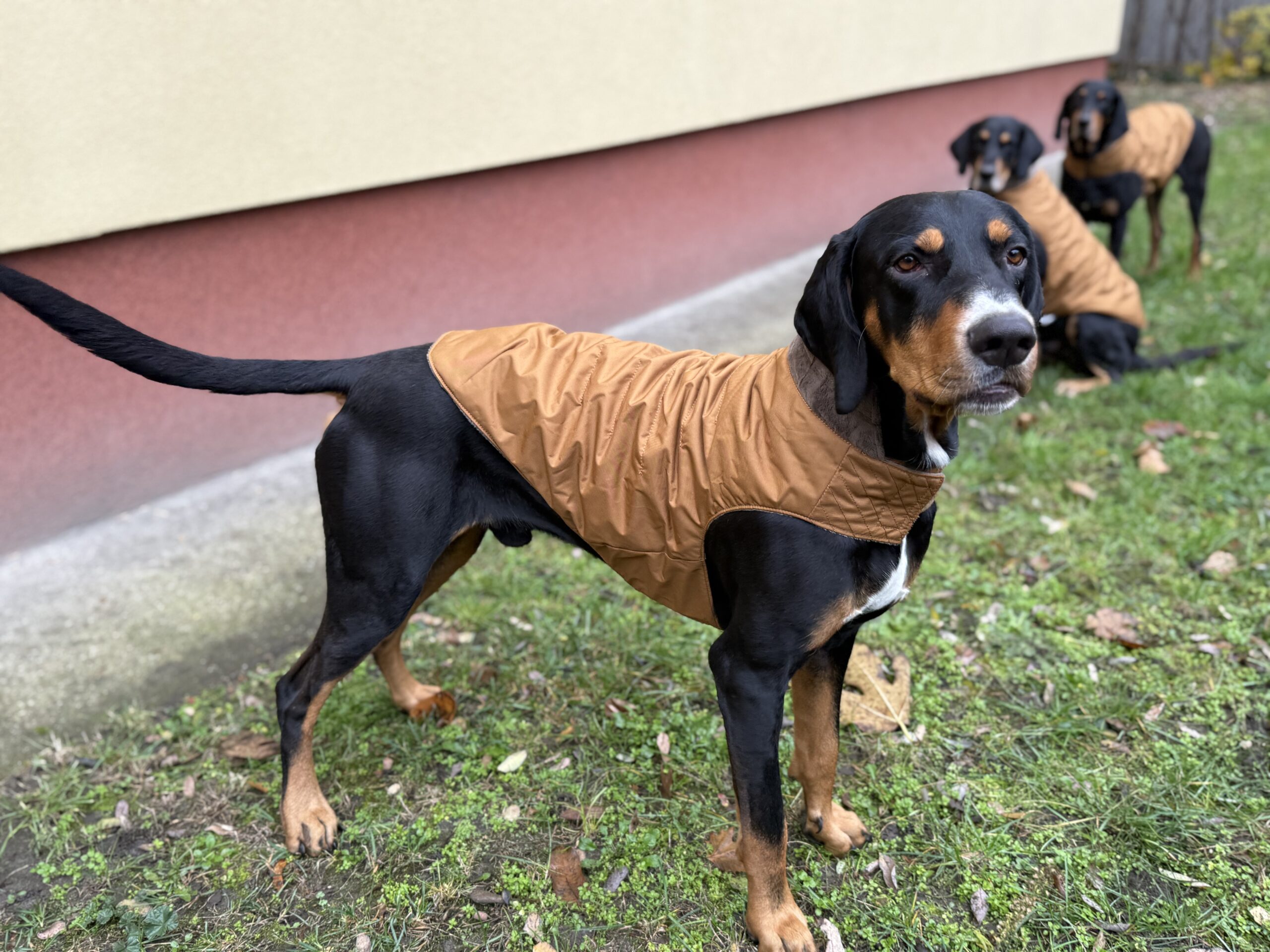 Új védőmellényeink tesztelése zajlik az erdélyi kopóinkkal – jövő héten indul az éles bevetés. Emellett kipróbálunk egy hőtartó, melegítő mellényt is, amelyet a hideg napokon, illetve a vadászatok során, a hajtások közötti átállásokkor és a vadászat végén fogunk használni.
